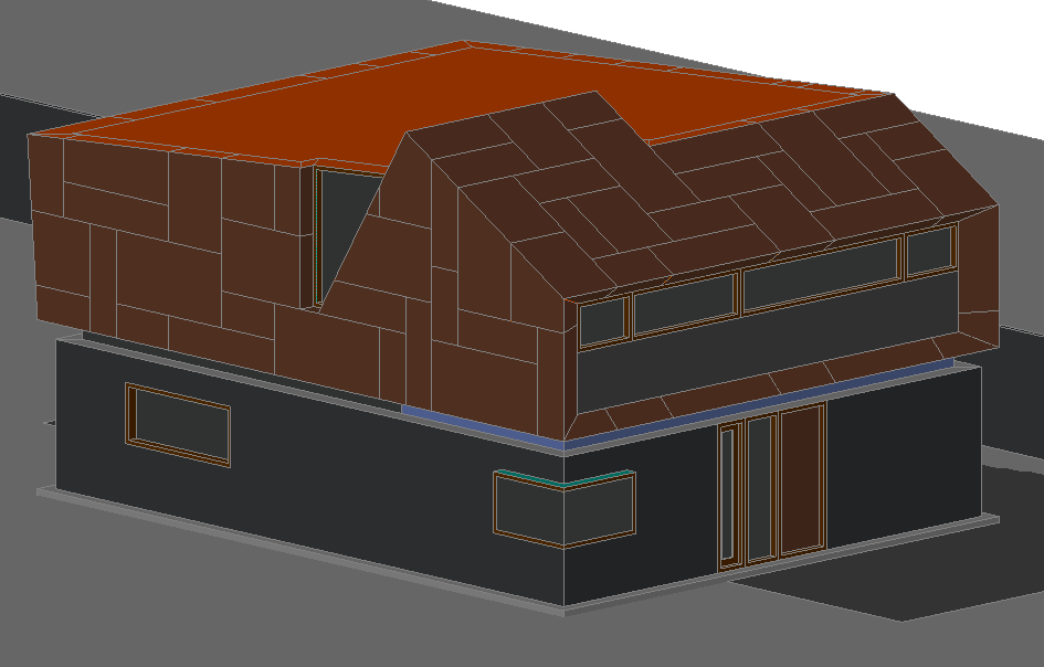 Modern 3 D plan detail, Roof detail, glass detail, door and window detail, etc.