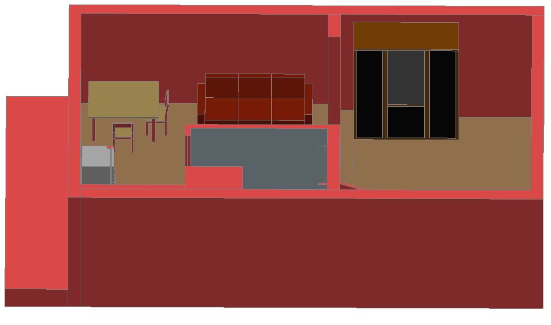 3 d small apartment plan detail, including furniture detail in table, chair, cub board, sofa and door detail, etc.