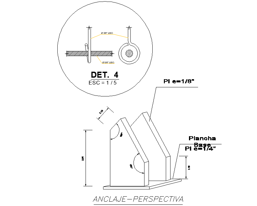 Perspective anchor detail, dimension detail, naming detail, scale 1:5 detail, etc.