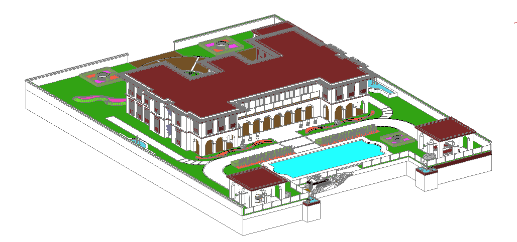 Elevation design of a building in 3d, Big scale architectural project, complete furniture detailing is shownm, vast project design