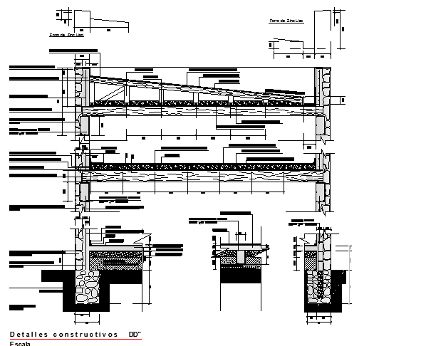 Mezzanine constructive detail , Sectional details with text detailing, sectional details with measurement and text is shown