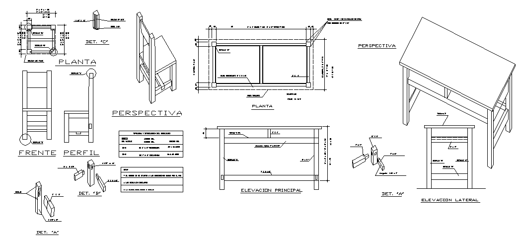 Furniture sectional detailing layout dwg file, chair and table design, measurement details, text details
