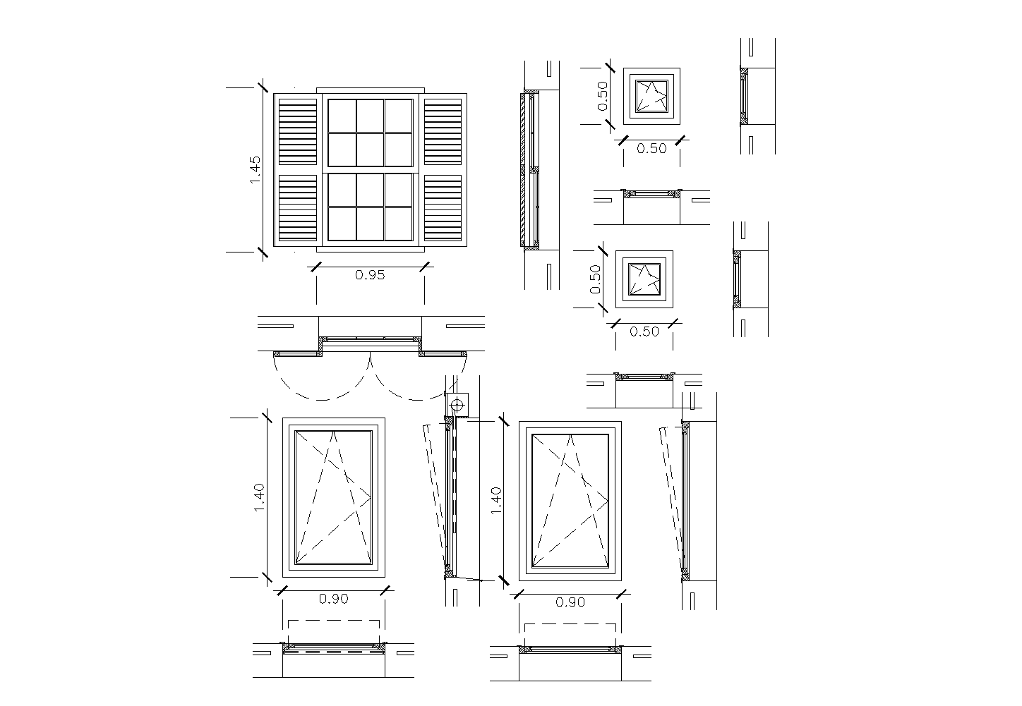 Window plan with detailed dwg. Detailing of drawing with opened window, sections detail, dimension detailing, framing detail, etc.,