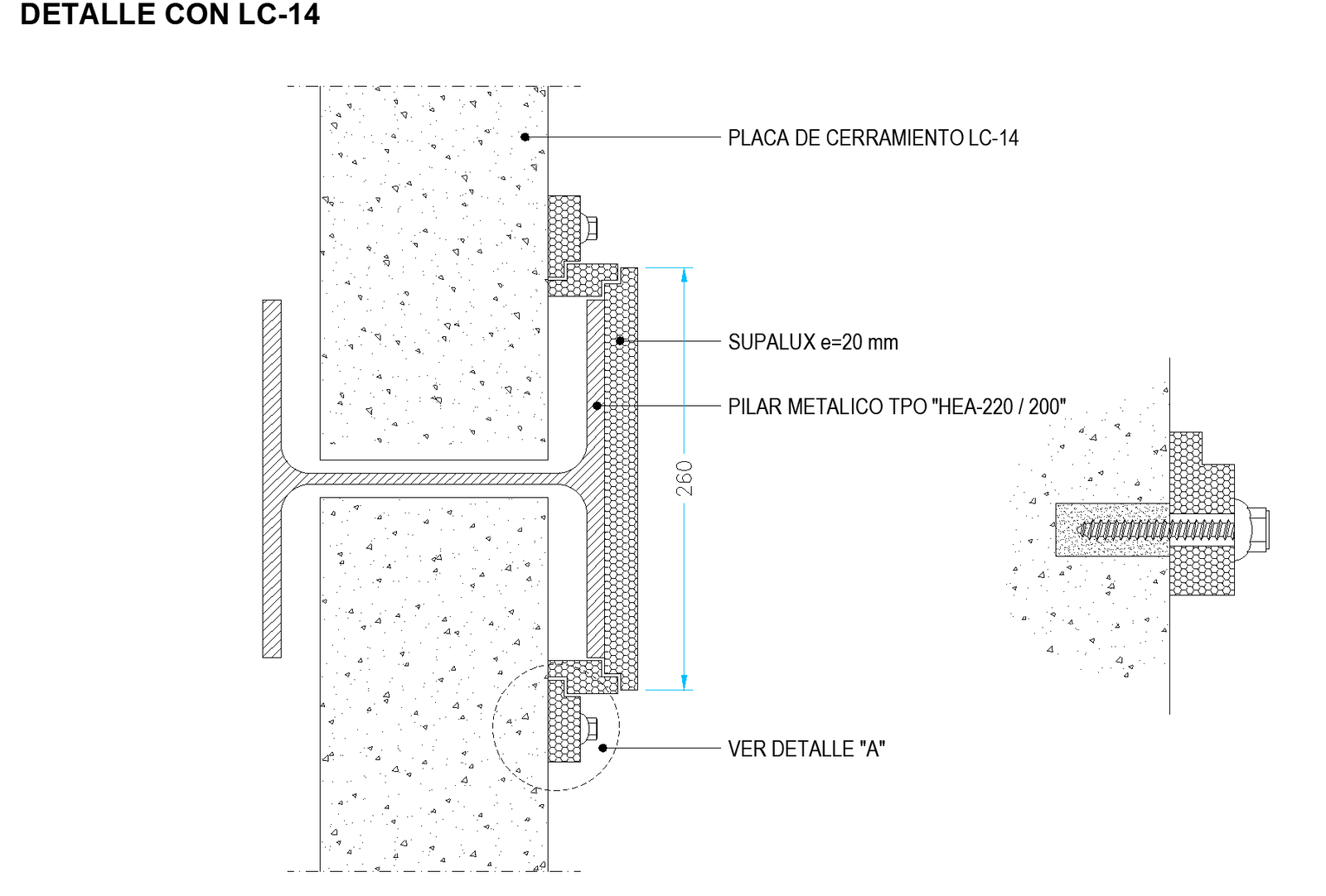 Connection wall plate with metallic pillar plan. Detailing of a wall with enclosure plate, metal pillar, etc.,