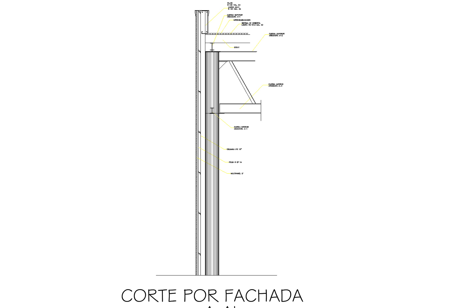 Detail roof metallic structure plan. Detailing of the metallic roof structure with cut per front detail.