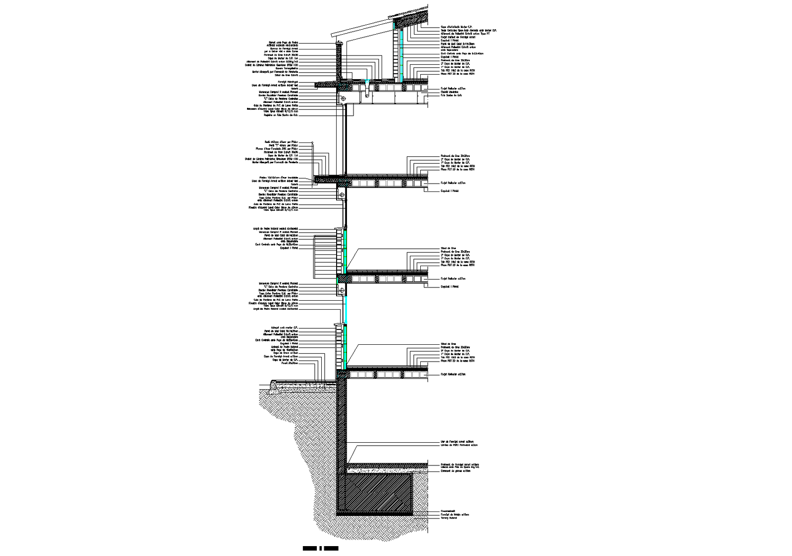 Detail façade housing building plan. Detailing of a beam with proper description and detailing mentioned near the plan.