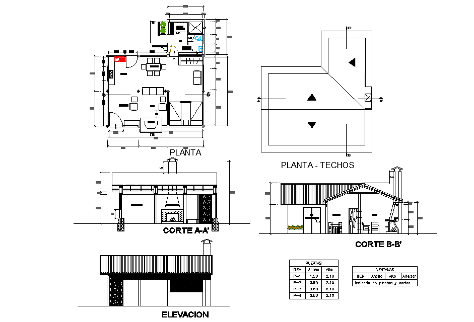 Small home plan detail, measurement detail, section line detail, table specification detail, section A-A’ detail, section B-B’ detail, etc.