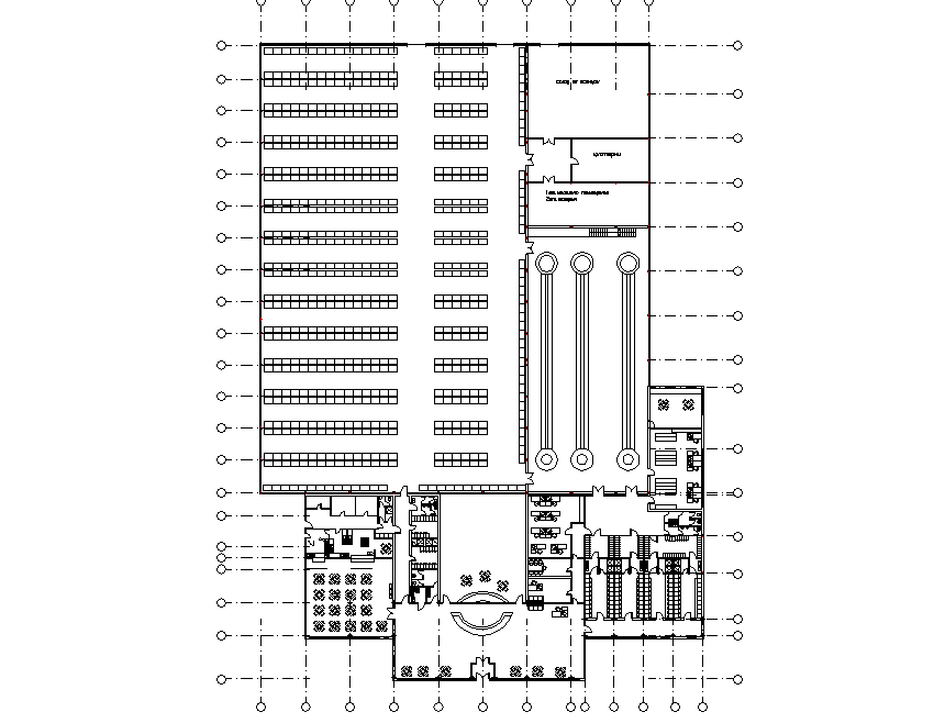 Factory plan detail, centre line plan detail, stair detail, furniture detail in table, chair, door and window detail, naming detail, etc.