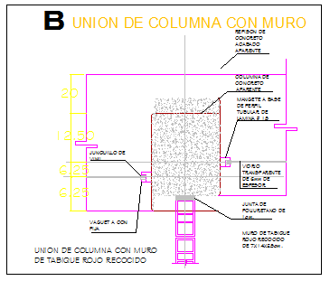 Column Union with wall detail design drawing