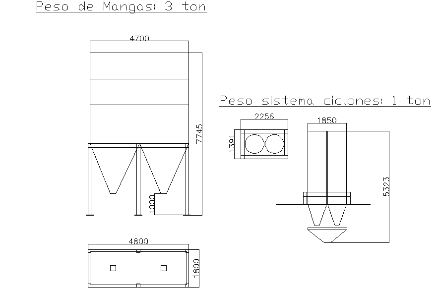 Weight cyclones system plan detail, dimension detail, naming detail, plan and section detail, etc.