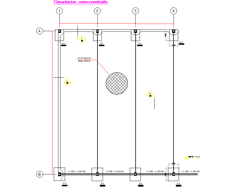 Foundation plan detail, section line detail, centre line detail, column numbering detail, dimension detail, etc.