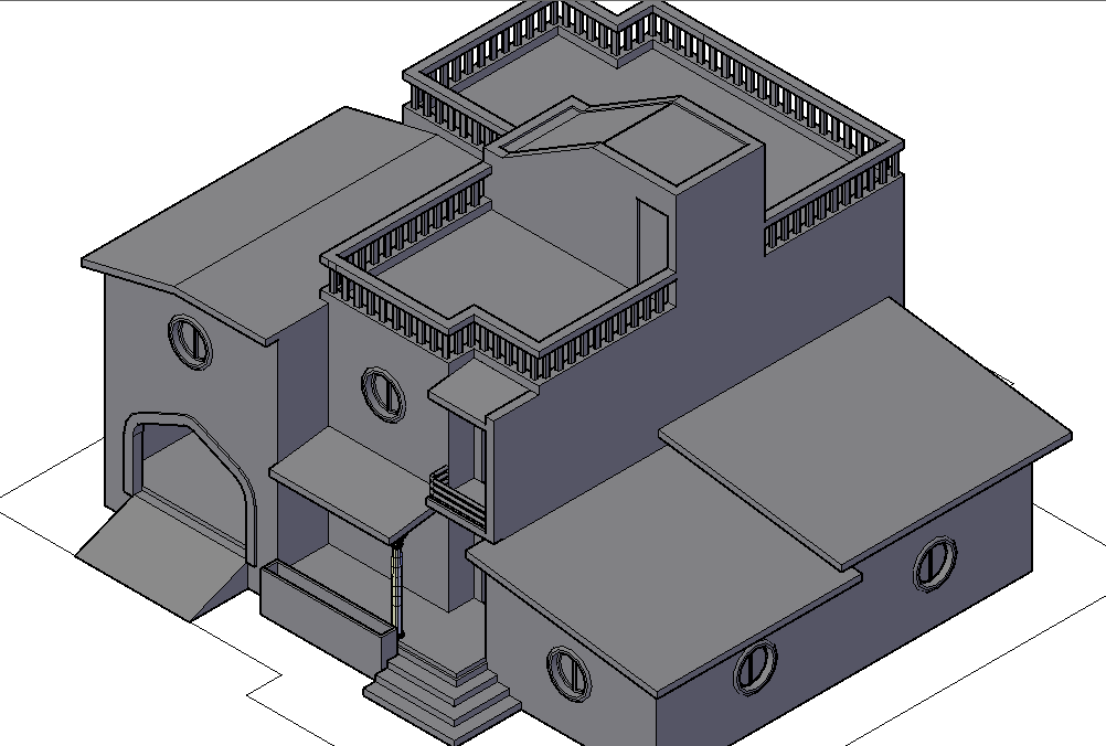 House 3 D plan detail, stair detail, terrace detail, balcony detail, stair cabin detail, etc.