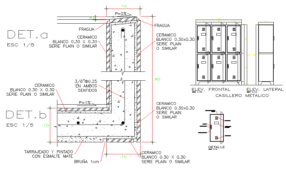 Wall section detail, dimension detail, naming detail, scale 1:10 detail, etc.