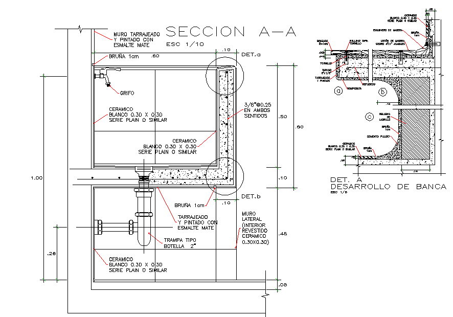 Banking development detail, dimension detail, naming detail, concrete mortar detail, etc.