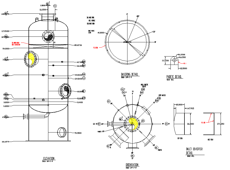 Gas separating equipment plan detail, centre line detail, dimension detail, naming detail, etc.