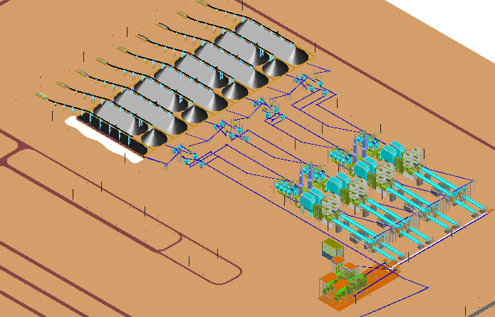 Steel crushing and grinding plant 3 d detail, electrical circuit detail, truck parking detail, etc.