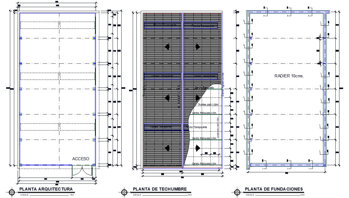 Industrial warehouse metal structure 200m2 detail, dimension detail, naming detail, section line detail, door and window detail, etc.