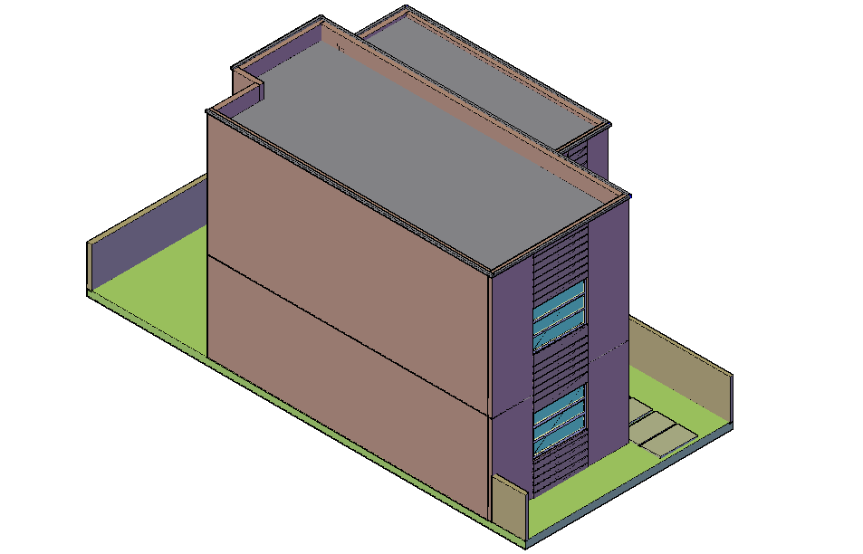 3D design of house with glass toughen in front dwg file in 3d view of house with view of ground area view with two level building view,wall view with wall support and glass toughen in front side,terrace