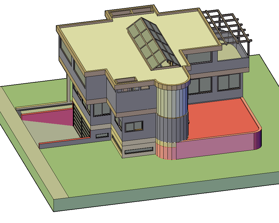 Multi storie 3D dwg file of banglow with entrance ,window,backyard,terrace. Etc