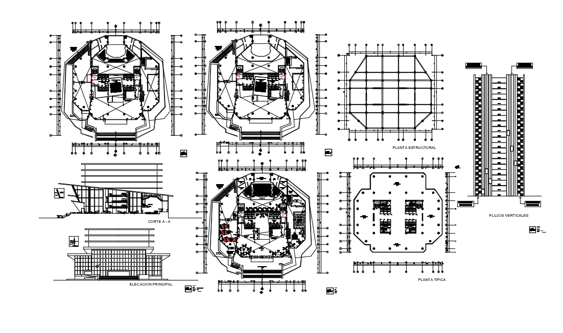 High-rise Building dwg file. Layout plan with map detailing, all level floor along of furniture detailing,structure plan,foundation plan and beam detail in autocad format.