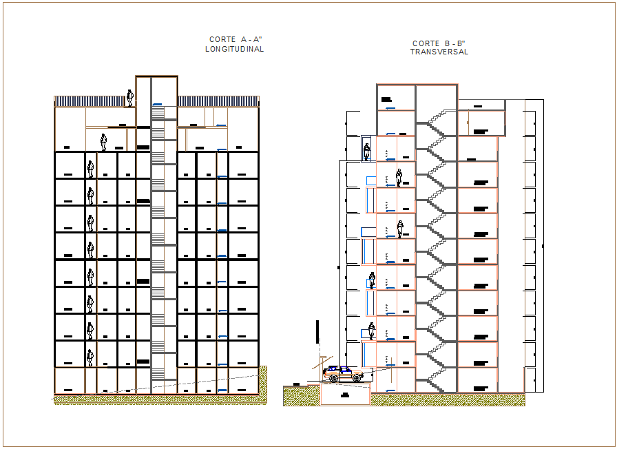 different axis section view of house dwg file in section view with view of floor view with floor level and view of stair view of each floor,house area view with bedroom and drawing room area,balcony area