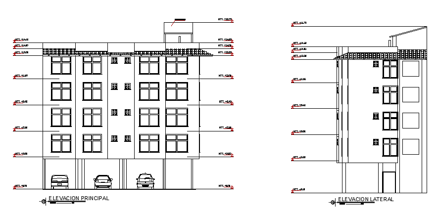 Hotel and resort elevation, here there is 2d elevation of a hotel , front elevation, side elevation in auto cad format