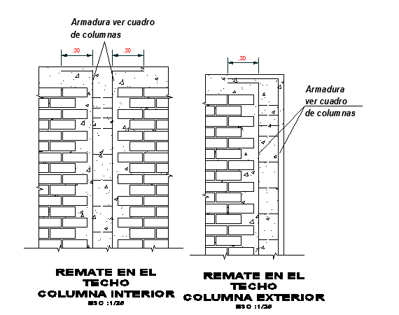 Brick construction elevation detail, front brick wall details are shown in auto cad format