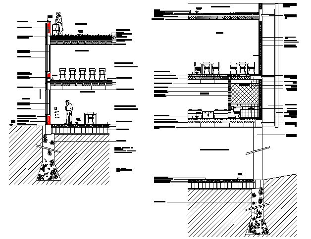 Cafe sectional detailing, Sectional details with text detailing, sectional details with measurement and text is shown
