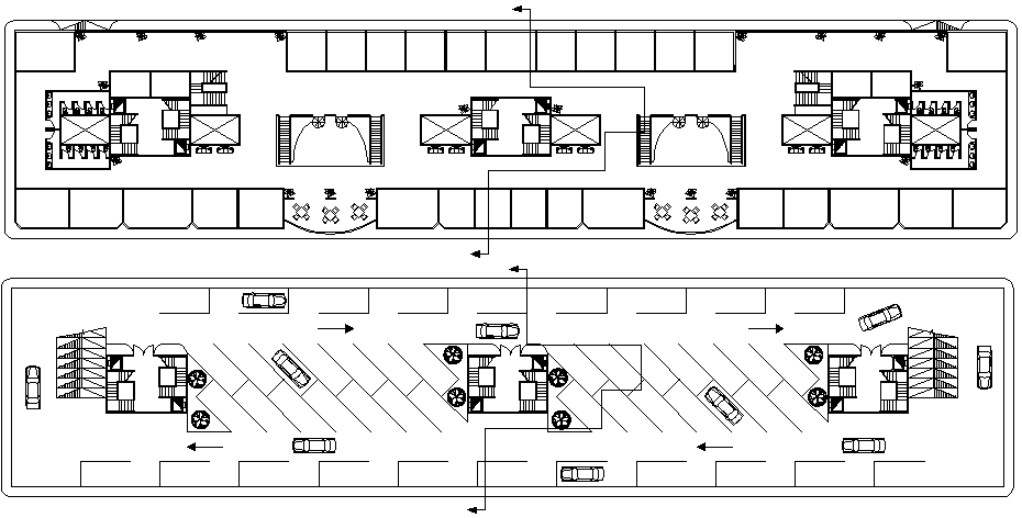Car parking with layout plan of building dwg file, Car parking with landscaping layout , car parking area is shown, with garden details, furniture detailing