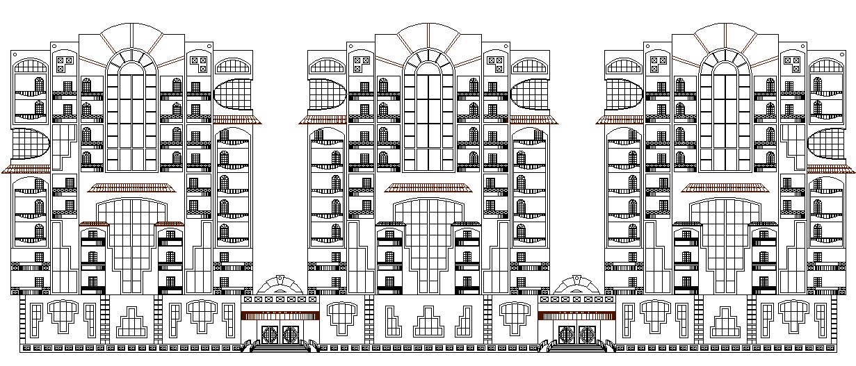 Apartments front detailing 3d, Big scale architectural project, complete furniture detailing is shownm, vast project design