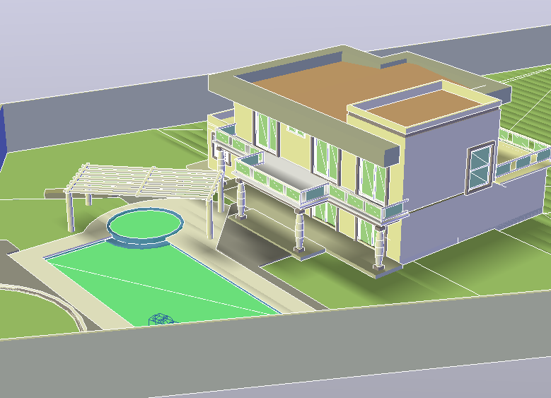 House 3 D plan autocad file, swimming pool, column design, balcony in reeling detail, landscaping detail in tree and plant, etc.