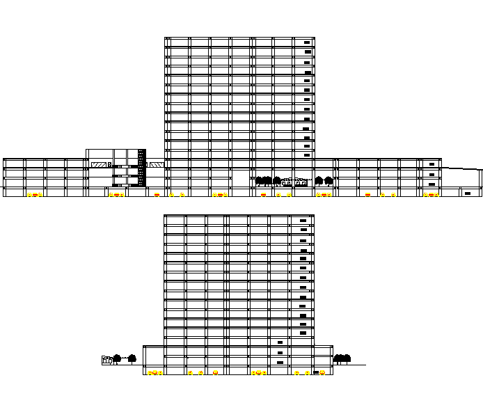 Section commercial building layout plan dwg file detail, basement detail, car parking detail, landscaping detail in tree and plant detail, naming detail, etc.