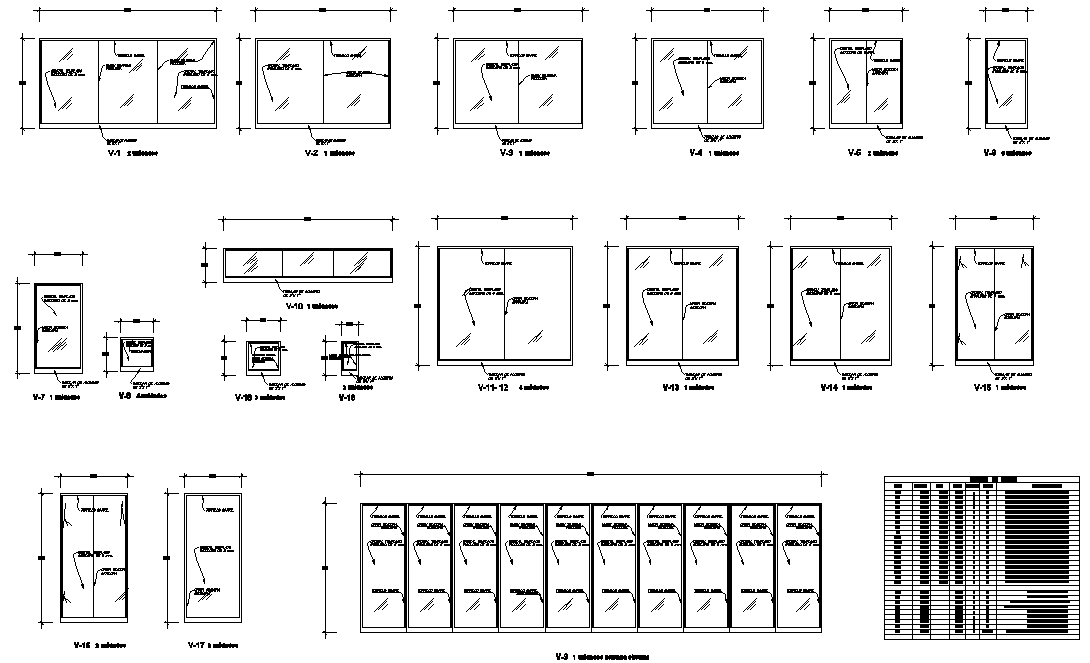 Sliding door detail in autocad file, dimension detail, naming detail, specification table detail, glass detail, etc.