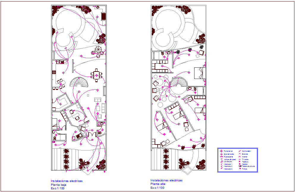 Electrical installation view with its legend and single line with electrical view for residential area dwg file