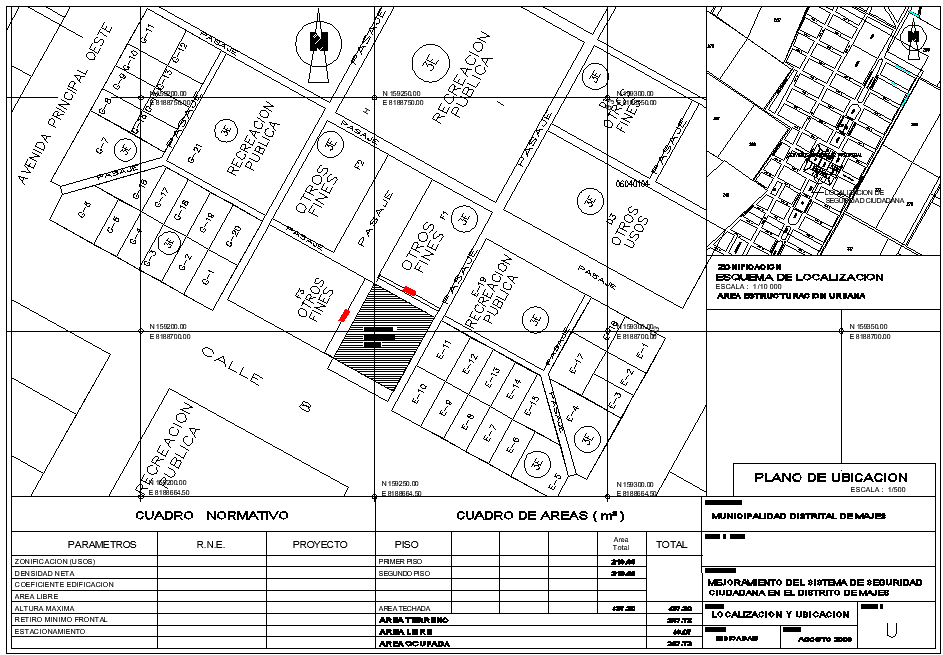 Site plan dwg file, north direction detail, naming detail, location detail, flat block numbering detail, grid line detail, area table detail, etc.