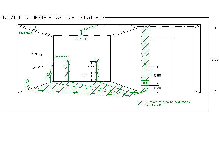 Detail of fixed installation recessed dwg file, dimension detail, zone electrical detail, light, switch board detail, hatching detail, etc.