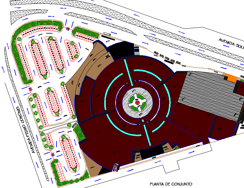 Detail office plot autocad file, block divided number detail, road detail, naming detail, car parking detail, landscaping detail in tree and plant detail, etc.