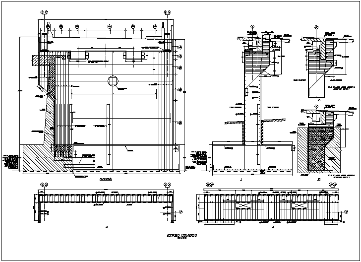 Sectional elevation with view of exterior and interior view with structural view for bridge dwg file in section view with wall foundation view with its structure view and arm support view with its bar view and exterior and interior view with detail and necessary dimension.