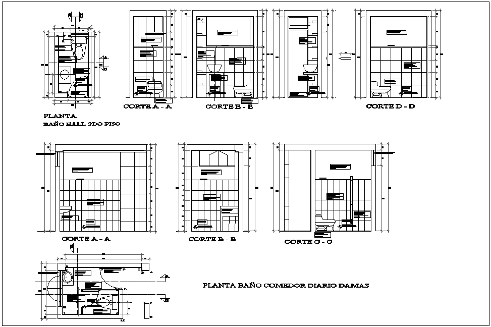Bathroom view with dining area plan and section view for office area dwg file in plan with view of