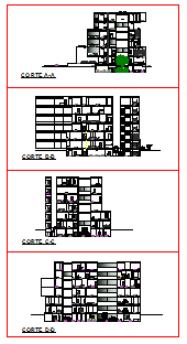 Here the Sections design drawing of corporate building design drawing with four different side view section design drawing in this auto cad file.
