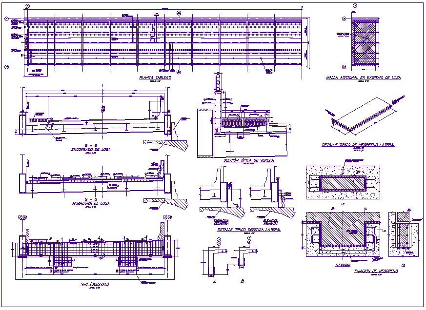 Plan,elevation and section view of bridge portion with steel structure view dwg file in plan with view of