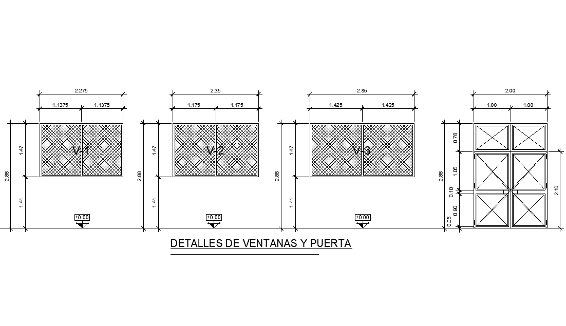Detail of door and window autocad file, leveling detail, dimension detail, naming detail, grid line detail, etc.