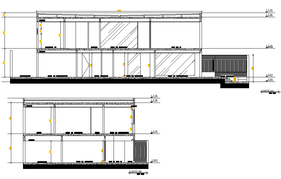 Detail of section shopping mall autocad file, leveling detail, section A-A’ detail, section B-B’ detail, dimension detail, naming detail, etc.