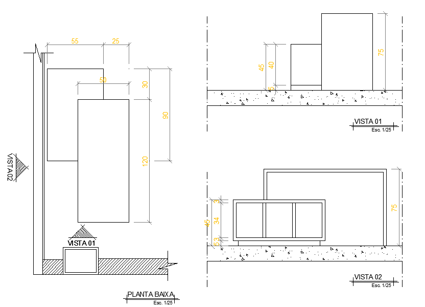 Window section layout file, section 1-1 detail, section 2-2 detail, dimension detail, naming detail, scale 1:25 detail, concrete mortar detail, etc.