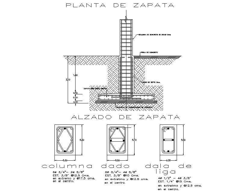 Foundation and column section autocad file, reinforcement detail, dimension detail, naming detail, bolt nut detail, hook detail, etc.