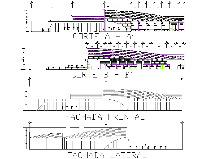 Elevation and section market dwg file, section A-A’ detail, section B-B’ detail, front elevation detail, side elevation detail, dimension detail, naming detail, centre lien detail, etc.