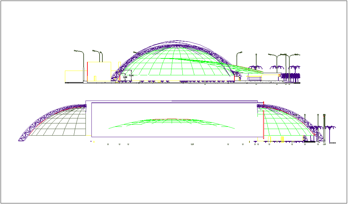 Hipper market design view dwg file in elevation with view of circular entry way with view of boh circular end view with necessary view.
