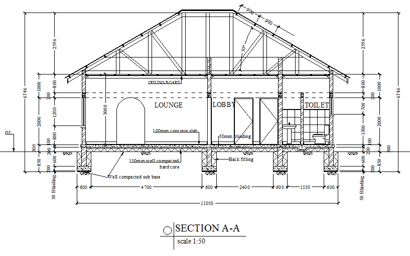 Section servants quarter plan layout file, dimension detail, naming detail, truss detail, furniture detail in door and window detail, toilet detail in sink and water closed detail, etc.
