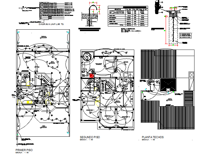 Electrical house plan detail dwg file, circuit detail, stair detail, scale 1:50 detail, leveling detail, naming detail, hatching detail, specification table detail, etc.
