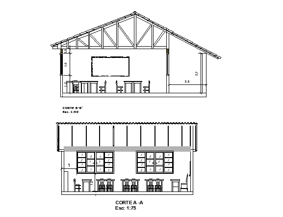 Cafe front sectional elevation details